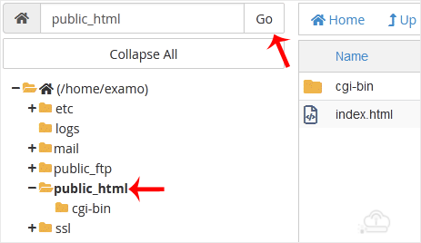3. In cPanel File Manager, navigate to the directory where you want to upload your files to. For example, should you wish to upload your files to the public HTML directory, you must first go to /public_html. On the left side, in the list of directories, double click on the public_html directory.