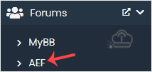 4. On the left side, locate the Forums category. Click on it and then on the AEF link that appears.