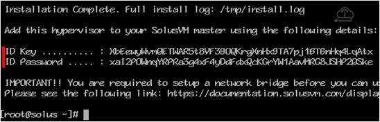 Step 3: Once it completes, it will show you the Slave keys and further instructions for your virtualization type. You can now use these keys to add a node to your SolusVM Master panel. You will need to have a SolusVM Slave license for each node.