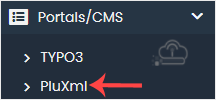 4. On the left side, locate the Portal/CMS category. Click on it and then on the PluXml link that appears.